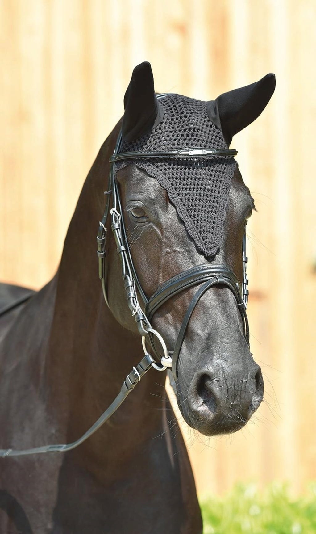 Il prodotto è aderente sulla zona della fronte grazie all‘elastico sul copricapo a punta da fissare sulla capezza.