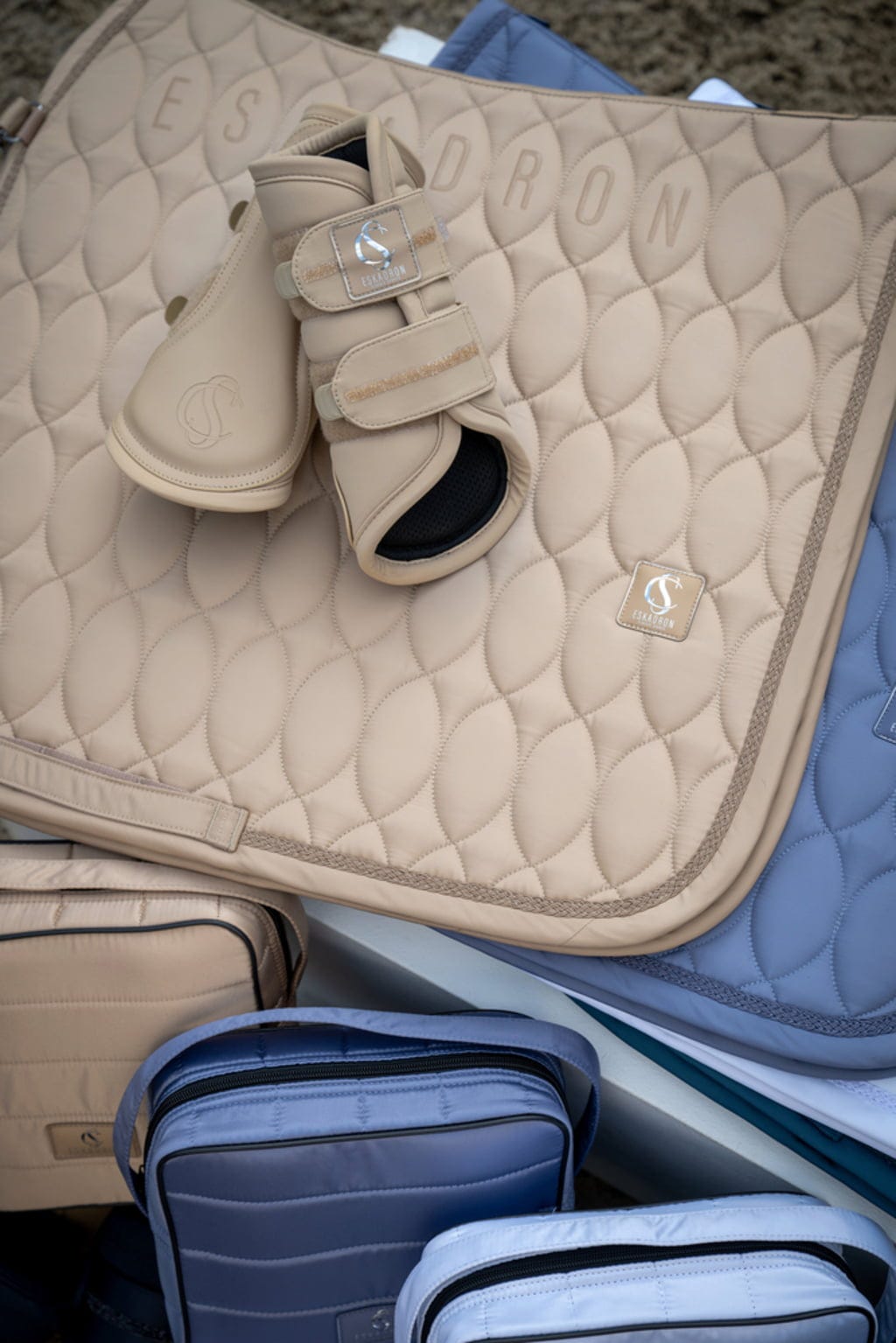 I paracolpi Softshell Jewel combinano un materiale esterno idrorepellente con un interno in rete altamente traspirante. Le scintillanti chiusure in velcro Jewel sono un dettaglio di grande impatto visivo, che si abbina perfettamente ai sottosella della collezione e fa risplendere il tuo cavallo durante l'allenamento.