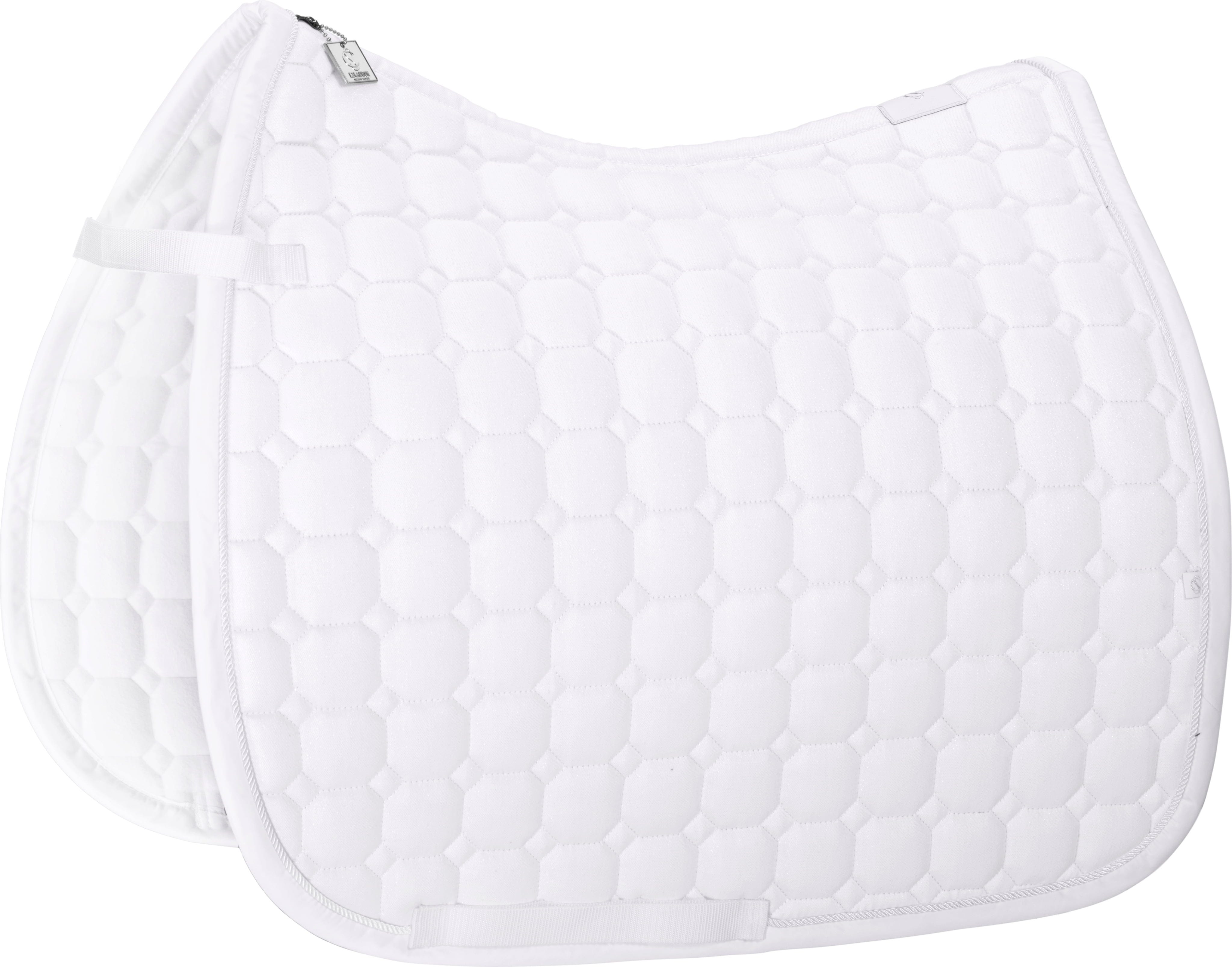 Ami il design naturale del cotone ma non vuoi rinunciare a un tocco glamour? Il sottosella Cotton Glitter combina una parte superiore in glitter scintillante con una parte inferiore in molton delicato sulla pelle. La trapuntatura compatta garantisce un'ottima vestibilità sotto la sella, mentre il piping tono su tono completa armoniosamente il design. Il passante per il sottopancia con le sue tre opzioni di fissaggio è particolarmente pratico, offrendo la massima flessibilità durante la sella.