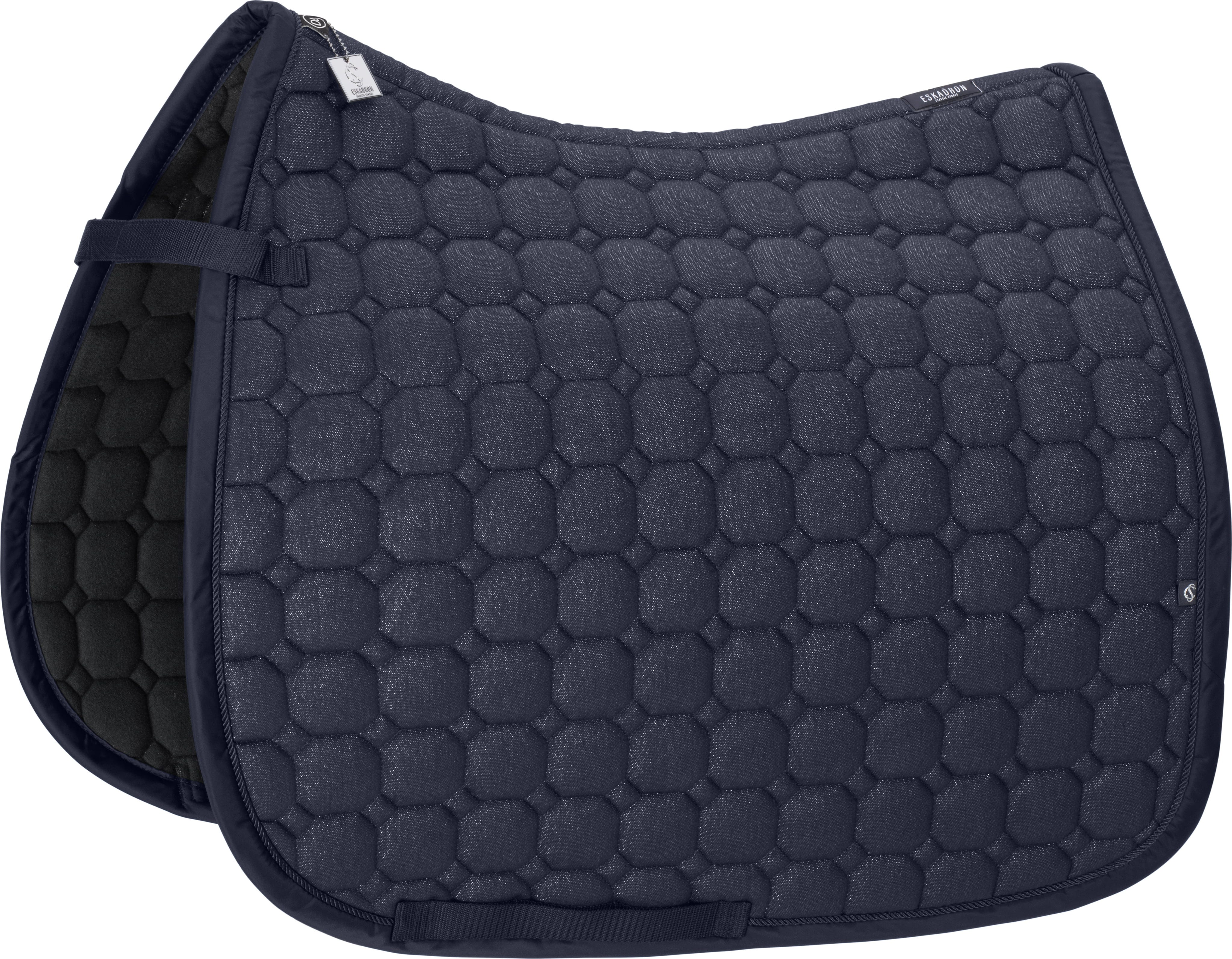Ami il design naturale del cotone ma non vuoi rinunciare a un tocco glamour? Il sottosella Cotton Glitter combina una parte superiore in glitter scintillante con una parte inferiore in molton delicato sulla pelle. La trapuntatura compatta garantisce un'ottima vestibilità sotto la sella, mentre il piping tono su tono completa armoniosamente il design. Il passante per il sottopancia con le sue tre opzioni di fissaggio è particolarmente pratico, offrendo la massima flessibilità durante la sella.