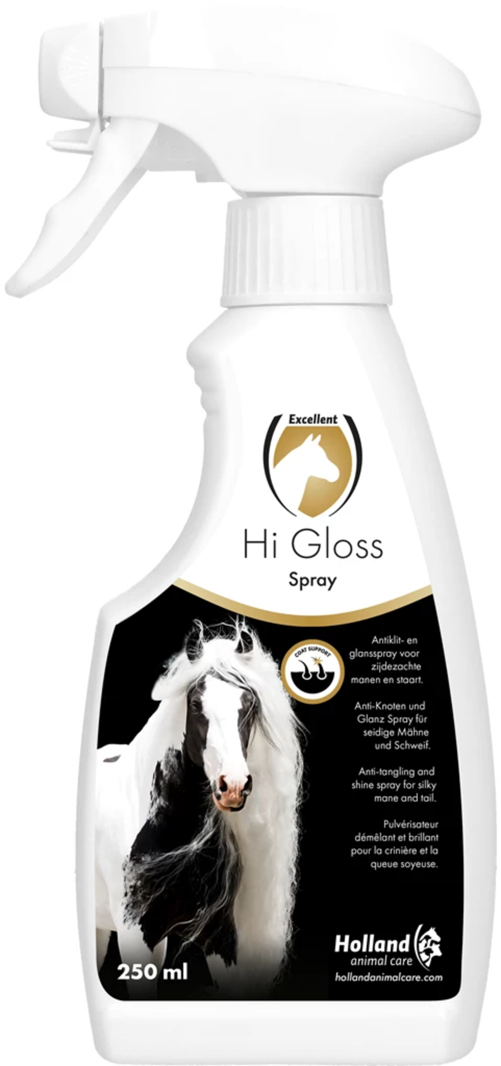 Cerchi uno spray illuminante che faccia più che semplicemente brillare? Allora lo spray Hi Gloss è la soluzione perfetta per te e per il tuo cavallo. Districa senza sforzo la criniera e la coda, rende il pelo setoso e dona al destriero un volume incredibile con una luminosità favolosa: ideale per l'uso quotidiano o per una grande visibilità alle competizioni.