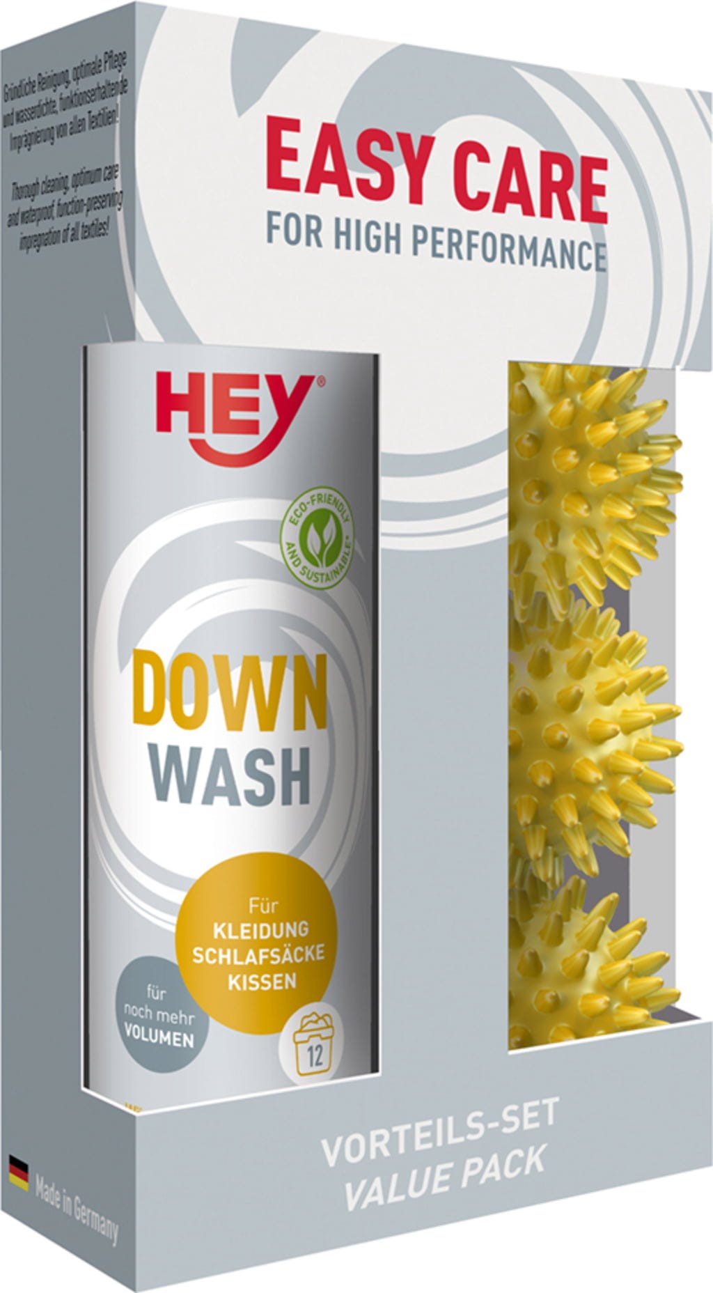 Il Down Wash Set di HEY Sport offre una soluzione professionale per la pulizia di capi d'abbigliamento e tessuti per la casa imbottiti in piuma di alta qualità. La sua formula speciale protegge la delicata struttura della piuma, ne preserva l'elasticità naturale e garantisce che traspirabilità e volume rimangano inalterati.