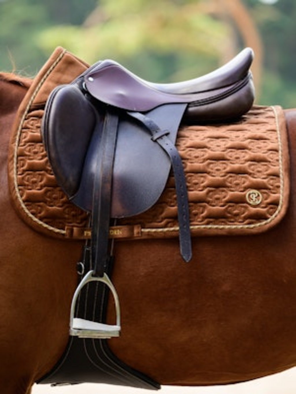 Il sottosella Velvet Monogram unisce un design lussuoso a una funzionalità ottimale. Grazie alla sua forma anatomica, offre al cavallo maggiore spazio al garrese, per una maggiore libertà di movimento e comfort. Il morbido velluto garantisce una vestibilità confortevole, mentre il bordo bordato in velluto previene gli sfregamenti.