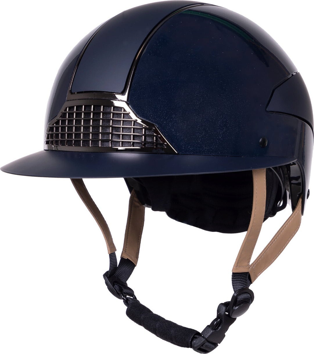 Questo elegante casco da equitazione di QHP è la scelta ideale per chi cerca stile e comfort. La calotta esterna presenta una raffinata finitura opaca con una leggera lucentezza glitterata che dona un tocco di eleganza. La particolare visiera polo non solo aggiunge un dettaglio ricercato, ma offre anche una migliore visibilità sotto il sole.