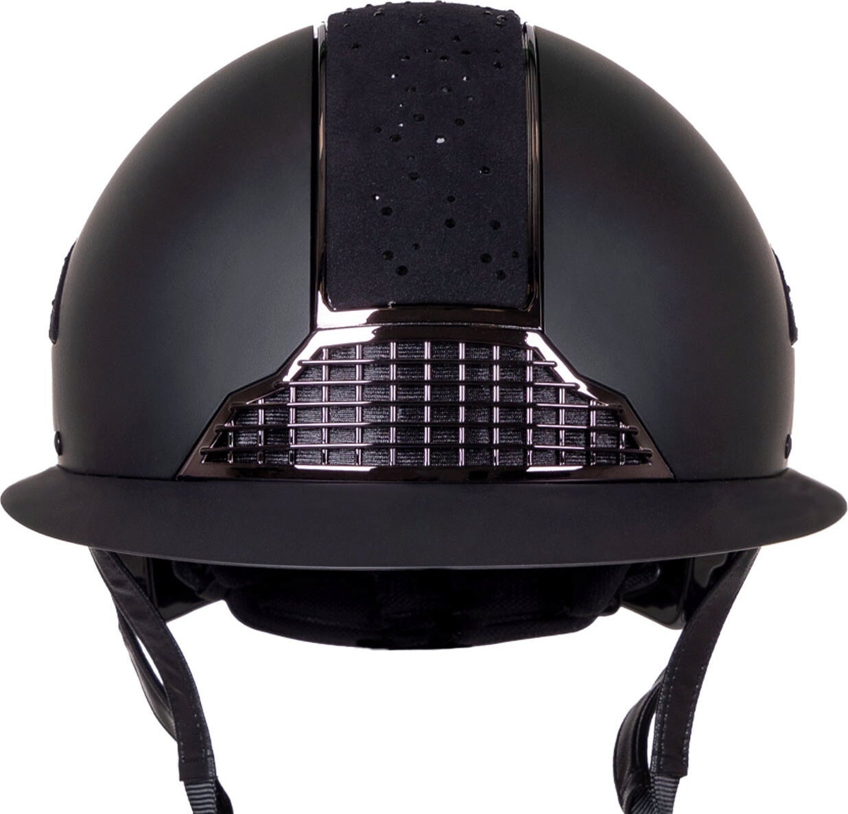 Il casco da equitazione Ohio di QHP è un modello confortevole e di grande impatto visivo, che soddisfa ogni esigenza. Il suo look elegante è dato dalla calotta esterna decorata con scintillanti strass, che lo rendono molto chic. La visiera polo aggiunge un tocco raffinato e assicura una visibilità ottimale anche sotto la luce intensa del sole. Il comfort è garantito dalla griglia di ventilazione integrata, che mantiene la testa piacevolmente fresca.