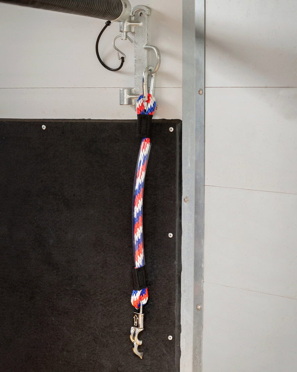 Con la Corda di Fissaggio per Rimorchio di QHP puoi fissare in modo affidabile il tuo cavallo nel rimorchio. La sofisticata combinazione di moschettone e gancio antipanico garantisce una facile maneggevolezza e un fissaggio rapido.