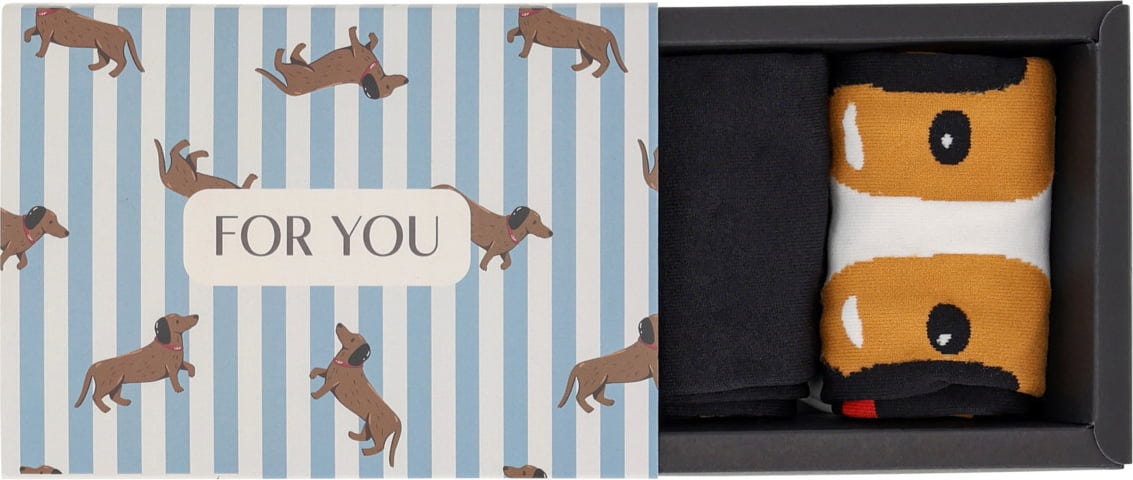 Dal punto di vista estetico, questo set, curato nei minimi dettagli, conquista con due look a tema animale: un paio presenta allegri motivi di beagle, mentre l'altro colpisce per i dolci dettagli di un bassotto. Dato che i calzini al ginocchio sono già confezionati in un'elegante scatola, questo set è ideale come piccolo regalo per gli amici amanti dei cani o come un meraviglioso regalo per se stessi.