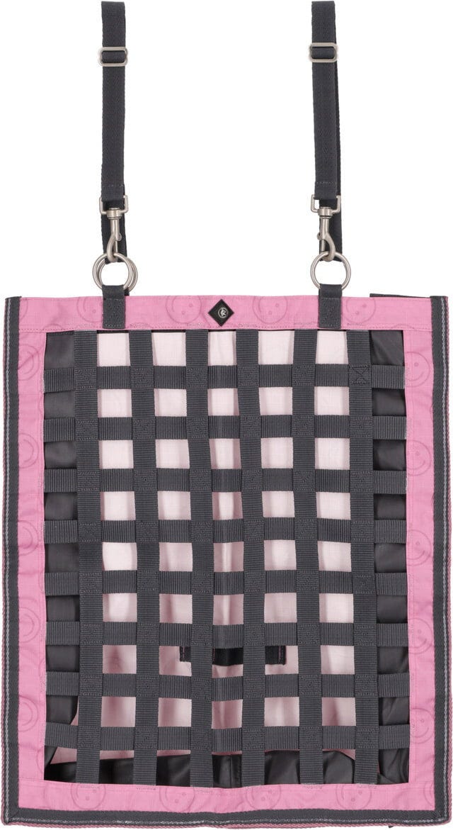 Questa rete per il fieno è la soluzione ideale per un'assunzione controllata di fieno all'aperto. La sua struttura a maglie fitte incoraggia il cavallo a mangiare porzioni più piccole, prolungando il tempo di attività e prevenendo efficacemente la noia nel paddock. Il design vivace della collezione estiva rende la rete un vero e proprio colpo d'occhio.