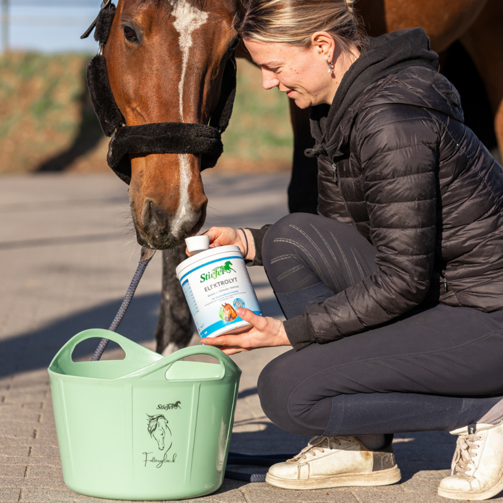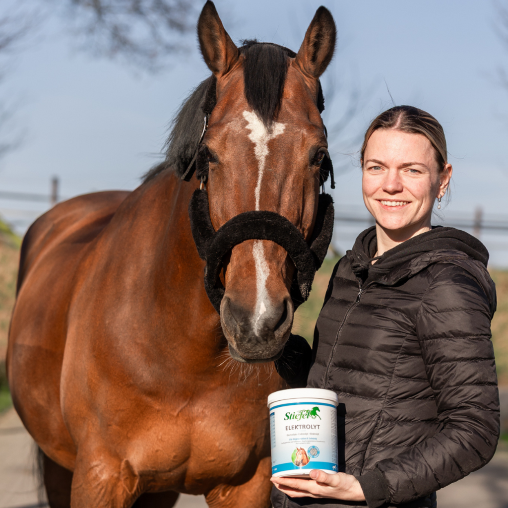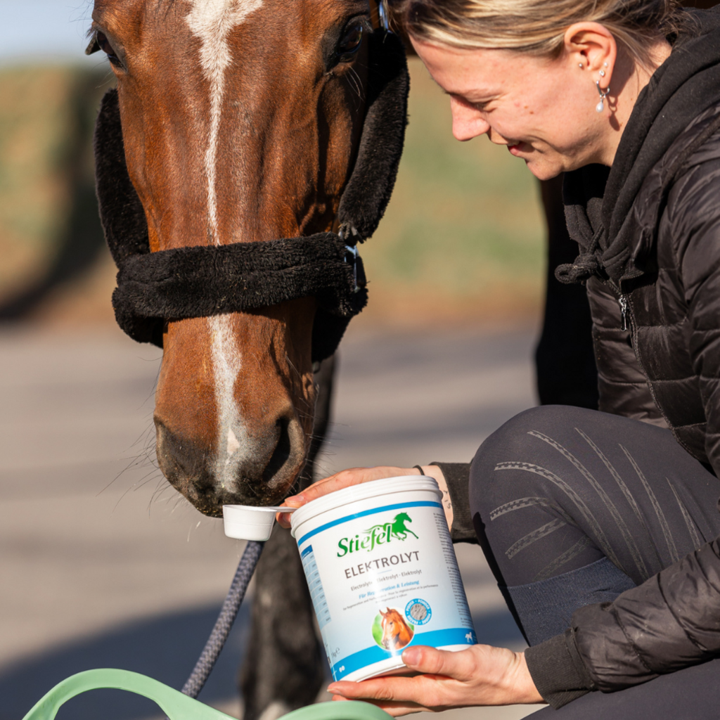 Elektrolyt di Stiefel è un mangime supplementare studiato per compensare le perdite di elettroliti. Quando suda eccessivamente, ad esempio a causa delle alte temperature o di uno sforzo fisico intenso, il cavallo perde preziosi minerali. Elektrolyt contiene molti elettroliti (minerali) e glucosio e può quindi contribuire ad una rapida rigenerazione durante uno sforzo intenso. Il prodotto è adatto per cavalli sportivi, ma anche puledri e cavalli anziani.