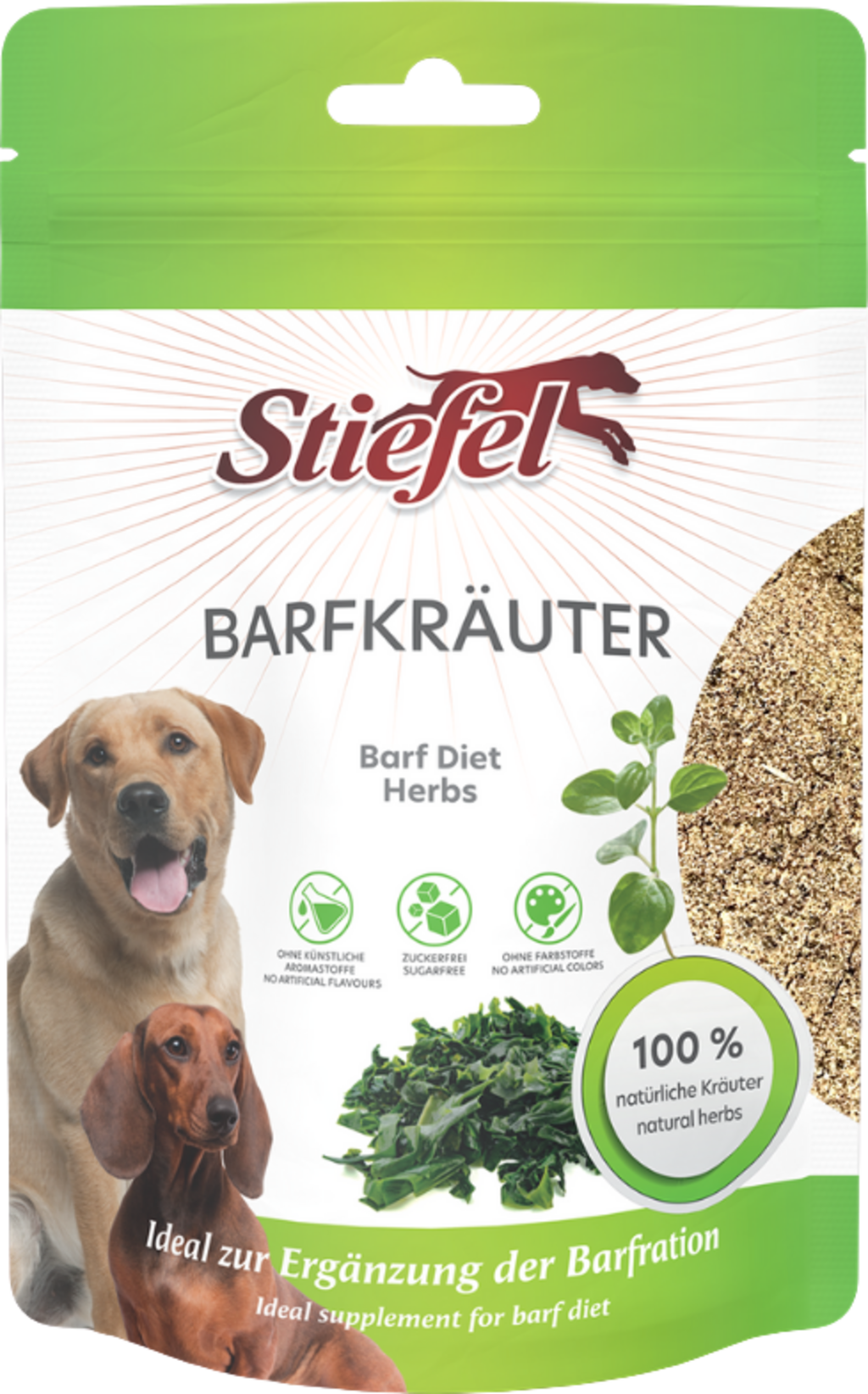 Le erbe BARF di Stiefel sono una miscela naturale di erbe di alta qualità con origano, timo, cinòrrodi e ingredienti probiotici per supportare la flora intestinale. Questa miscela di erbe è adatta come integratore alla dieta BARF quotidiana.