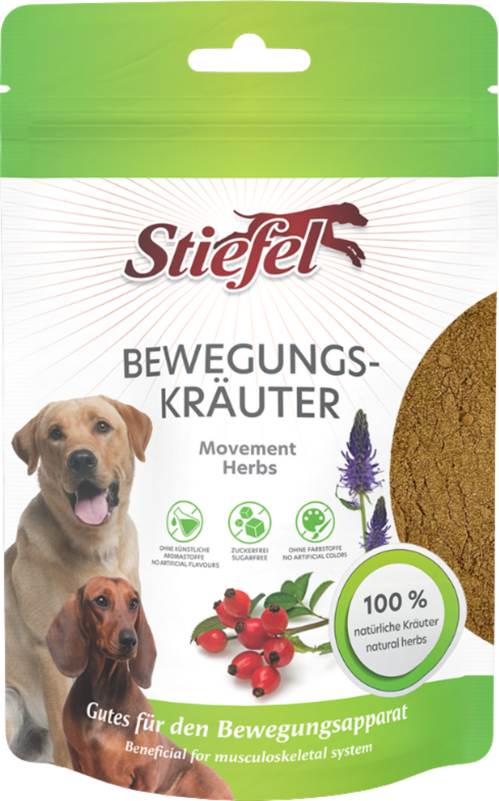 Le erbe per il movimento di Stiefel sono una miscela di erbe naturali di alta qualità a base di polvere di cozze verdi, artiglio del diavolo e cinorrodi, che supportano il sistema muscolo-scheletrico. 100% naturale e senza zucchero.