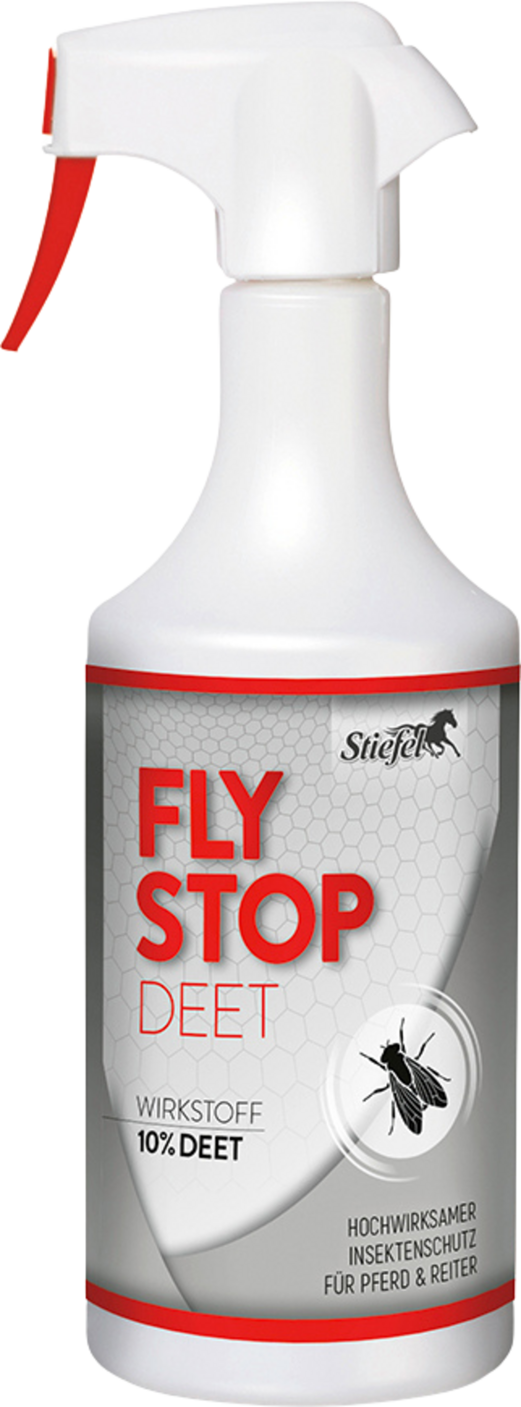Fly Stop DEET di Stiefel è uno speciale repellente per contrastare gli insetti. La formulazione di alta qualità è studiata per i cavalli e per i cavalieri. Non solo: rispetta anche la normativa sui biocidi. Il prodotto ha il principio attivo DEET® raccomandato dall'OMS, che ha un effetto duraturo contro insetti fastidiosi come tafani, lipoptene e mosche. Per un'efficacia ottimale, il prodotto deve essere spruzzato su tutto il cavallo. Grazie alle proprietà volatili del principio attivo, si forma una sottile nuvola protettiva profumata, che può durare per diverse ore.