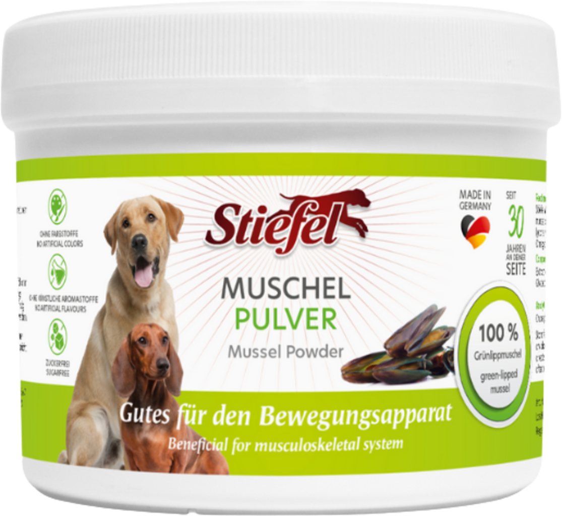 La polvere di cozze di Stiefel è composta al 100% da polvere di cozze verdi. Questa polvere può contribuire al mantenimento di un sistema muscolo-scheletrico sano. La composizione è ottimizzata con glicosaminoglicani noti per la loro capacità di rafforzare il tessuto connettivo.