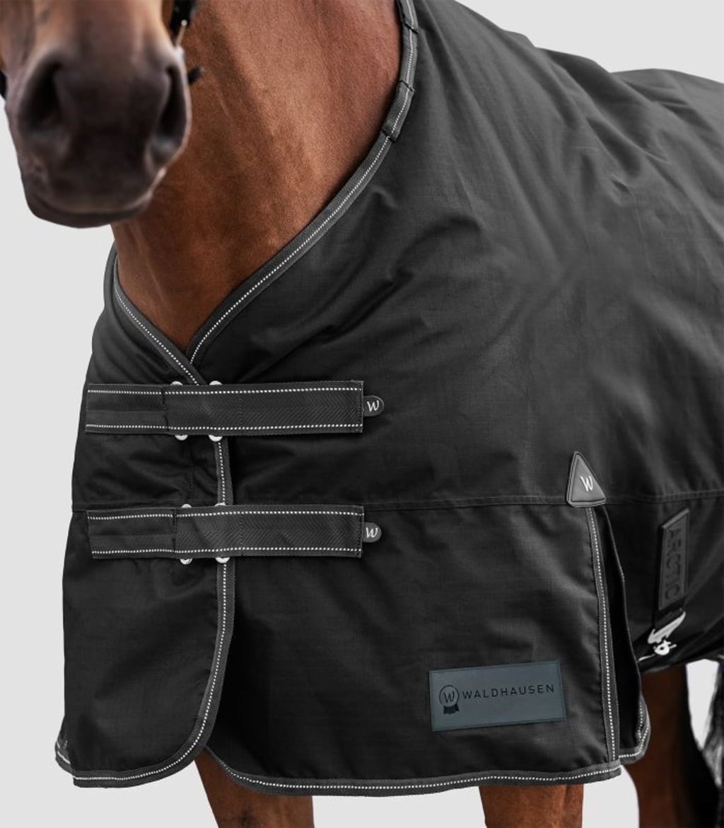 Cerchi una protezione affidabile dalle intemperie per il tuo cavallo? Allora la coperta da esterno Arctic Light di Waldhausen è perfetta! Grazie al resistente tessuto ripstop da 600 denari, è robusta, impermeabile e traspirante. Il design leggero e la fodera interna antibatterica garantiscono il massimo comfort, permettendo al tuo cavallo di muoversi liberamente. Il soffietto è progettato per assecondare ogni movimento, sia al pascolo sia nel paddock.