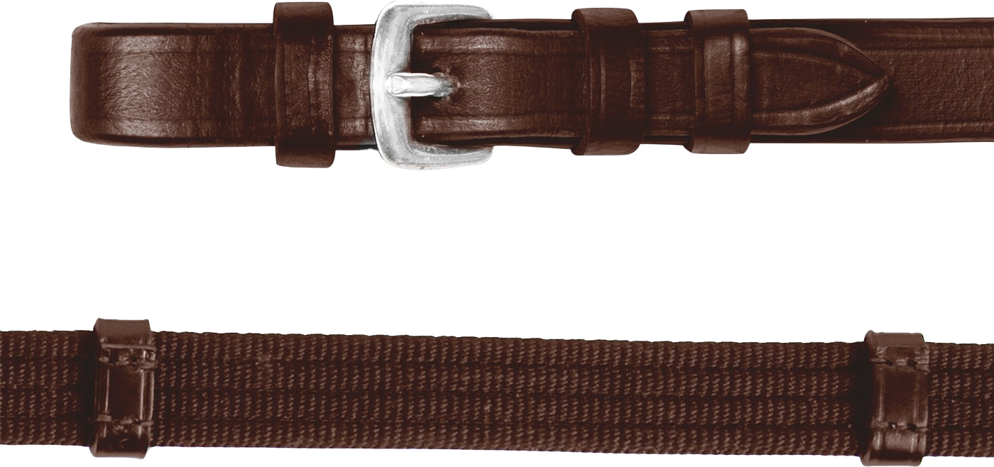 Queste redini della pregiata collezione di Waldhausen convincono per la loro eccellente fattura e la pelle di altissima qualità, che garantisce una lunga durata. La superficie di presa è realizzata in robusto materiale a fettuccia, garantendo una presa sicura. Le redini a fettuccia sono dotate di robusti fermi in pelle per un controllo uniforme delle redini e una regolazione semplificata della lunghezza. È incluso anche un pratico cursore per martingala. Le eleganti e resistenti fibbie in acciaio inox completano il design classico.
